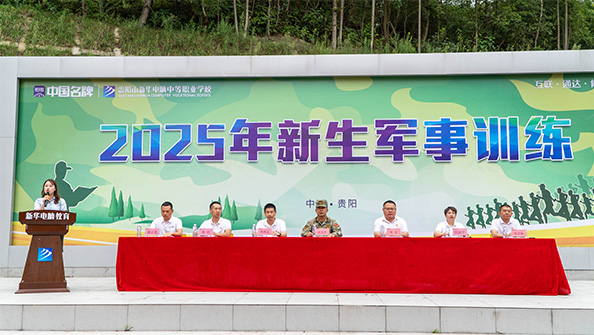 貴陽市新華電腦中等職業(yè)學(xué)校副校長周四文鄭重宣布:“貴陽市新華電腦中等職業(yè)學(xué)校2025年秋季新生軍訓(xùn)正式開始!”話音落下,全場響起熱烈掌聲,標志著為期一周的軍事訓(xùn)練正式啟動!