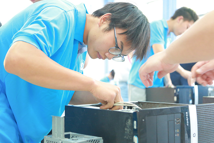 隨后進(jìn)入比賽環(huán)節(jié),選手們各自憑借熟練的技術(shù)和扎實(shí)的基礎(chǔ),有序的為存卡、顯卡、CPU等硬件進(jìn)行組裝。盡管遇到了一些問題,他們都沉著應(yīng)戰(zhàn)。每當(dāng)有一名選手組裝完一臺(tái)主機(jī),裁判老師們都會(huì)上前認(rèn)真、細(xì)心檢查主機(jī)是否正確組裝完好,如果存在錯(cuò)誤的,裁判們還會(huì)細(xì)心地講解怎樣組裝才是是正確的,如果這個(gè)地方裝錯(cuò)了,電腦可能會(huì)出現(xiàn)什么樣的問題。選手們也會(huì)認(rèn)真聽裁判的講解,并且會(huì)發(fā)表自己的意見,共同探討怎樣才可以既快又好地組裝一臺(tái)主機(jī)。裁判們?cè)谟?jì)算選手成績時(shí)也一再核對(duì),以確保每位選手的權(quán)益。參賽的周同學(xué)表示,參加此次比賽很有意義,學(xué)習(xí)到了更豐富的實(shí)際應(yīng)用知識(shí),也發(fā)現(xiàn)自己的知識(shí)結(jié)構(gòu)上的不足,希望今后能有針對(duì)性的提高自己的薄弱項(xiàng)。