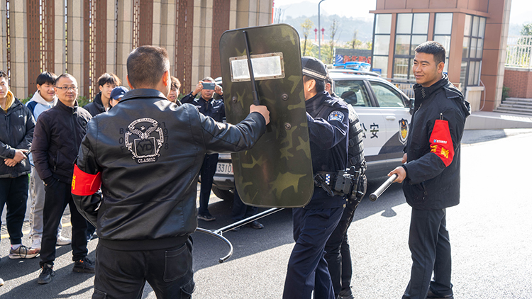 演習(xí)中,小孟派出所的民警們向師生們展示了各種安全工具的使用方法,包括警棍、盾牌、抓捕器等。他們詳細講解了這些工具的功能、特點和使用場景,并現(xiàn)場進行了示范操作。